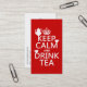 This reads Keep Calm and Drink Tea, in the style of the classic keep calm poster. I've added a posh teapot and delicate tea cups sitting on the words. It adds an extra british element to the ultimate british sentiment. It's a fun and cute design, and makes wonderful gifts for anyone who loves tea, or as decor for tea shops / coffee shops / cafes and the like.