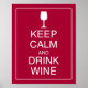 Garnet red wine glass "Keep Calm and Drink Wine" design is a parody of the "Keep Calm" WWII era poster.