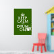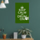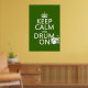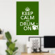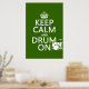 This reads Keep Calm and Drum On, in the style of the classic keep calm poster. The silhouette of a drumset stands beside the words. Perfect gift for the drummer in your band, or in your life.