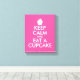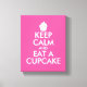 Keep calm and eat a cupcake wrapped canvas art print. Cute decoration for cup cake shop, bakery, home kitchen etc. Neon pink Keepcalm canvas print | Customizable text. Create your own funny Keep calm and carry on parody print or poster. Personalize this template with your own funny quote or saying and custom background colour.