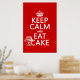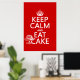 This reads Keep Calm and Eat Cake, in the style of the classic keep calm poster. There is a beautiful cake on a stand by the words. It's a lovely design, and fabulous advice in times of crisis. Great gifts for anyone who needs more cake in their life.