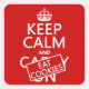 This reads Keep Calm and Eat Cookies, in the style of the classic keep calm poster. The final words have been added as though on a sticker or a stamp over the original. It's a fun humourous design, which pleases everyone and is good advice in an emergency. Wonderful gift for bakers both professional and amateur.