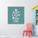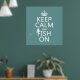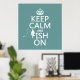 This reads Keep Calm and Fish On, in the style of the classic keep calm poster. There is a silhouette of a fisherman sitting on the edge of the words, his rod hanging off the edge. It's a beautiful simple design, which will be loved by everyone who loves to fish.