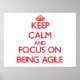 Use the search tool at my store to find other Being Agile merchandize. Keep Calm and focus on Being Agile products available on tshirts,sweatshirts,kids shirts, infant onsies, stickers, magnets, and much more Being Agile clothing fully customizable to your specifications. If you like what you see, please link to my store (www.zazzle.com/shirtsforall) or email a friend.