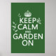 This reads Keep Calm and Garden On, in the style of the classic keep calm poster. Leaves are growing from the letters. It's a beautiful simple design which makes a beautiful range of products for the gardener in your life.