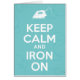 © Pela Studio / Wild Apple.  The image features a blue box with white text that reads Keep Calm and Iron On. An image of an iron can be seen on the image.