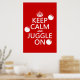 This reads Keep Calm and Juggle On, in the style of the classic keep calm poster. Three juggling balls are beside the letters. It's a beautiful design, great for anyone who loves to juggle, whether posters and t-shirts for a juggling get together, or gifts and giveaways for a juggling school. There's something for every juggler in your life.