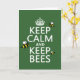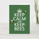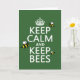 This reads Keep Calm and Keep Bees. Cartoon bees buzz alongside the words. It's a beautiful design, really popular with anyone interested in beekeeping and bee conservation.
