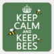 This reads Keep Calm and Keep Bees. Cartoon bees buzz alongside the words. It's a beautiful design, really popular with anyone interested in beekeeping and bee conservation.