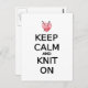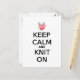 Keep calm and knit on with red yarn heart and knitting needles, word art, text design for t-shirt, cards, bags, gift