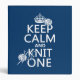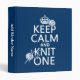 This reads Keep Calm and Knit One, in the style of the classic keep calm poster. It's a great design for anyone who loves to knit, it'll make gifts they love, or great furnishings for craft rooms.