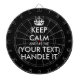 Keep calm and let (custom text) handle it funny Dart Board. Personalized keep calm and carry on dartboard. Personalize with your own funny parody. Fun Birthday gift idea for kids and adults. Trendy wall decor ideas for home, pub, car, cafe, restaurant, man cave, office and other places to relax. Modern typography template with crown. Create one for coworker, dad, friend, boss etc. Black and white or custom colours.