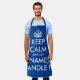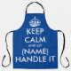 Keep calm and let (name) handle it funny blue BBQ apron for men and women. Vintage typography template with crown. Personalized kitchen cooking aprons in any colour. Trendy template with big letter typography design. Add your own name or humourous quote. Create your own one of a kind Birthday party gift for grill master, mom, dad, sister, brother, father, mother, wife, husband, friend, uncle, aunt, boyfriend, girlfriend, grandma, grandpa, kids, boss, co worker, chef, cook, colleague, coach, teacher, nurse, wedding couple etc. Available in small, medium and large size. Also great for dinner party, baking, dish washing, art & crafts work etc. Make a his and hers for him and her. Humour presents for friends and family.