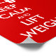 Keep calm and lift weight poster for weighlifters. Make your own Keep calm and carry on design parody. Funny weightlifting quote with barbell logo. Cool gift for weightlifter, bodybuilder or fitness instructor. Gym decoration.