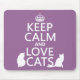 This is the classic "Keep Calm and Carry On" war poster, reworded to "Keep Calm and Love Cats". It's written in white on coloured background, and is accompanied by silhouettes of cats sitting near the words.
