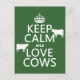 The design reads Keep Calm and Love Cows, in the style of the classic poster. There are silhouettes of two cows by the words. This is one of my most popular designs, and makes beautiful presents for the person in your life who loves cows.