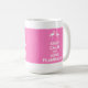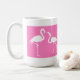 This is a fun mug for Flamingo lovers! The design goes all the way around the mug and features two flamingos on a bright pink background.