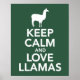 This print is a take off of the popular World War II Keep Calm posters. It features a silhouette of a llama on a dark green background.