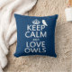 Keep Calm and Love Owls (any colour) Throw Pillow