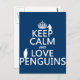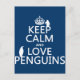 The design reads Keep Calm and Love Penguins, in the style of the classic poster. There are silhouettes of penguins standing happily on the letters. It's a stylish design, which makes great products for anyone who loves penguins.