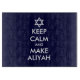 Features text reading "KEEP CALM AND MAKE ALIYAH." Aliyah (עֲלִיָּה), meaning ascent, is the Hebrew word for immigration to Israel from the diaspora. Aliyah is considered to be "going up" in the direction of Jerusalem. What are you waiting for?