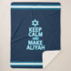 Glowing blue and white text reading "KEEP CALM AND MAKE ALIYAH." Aliyah (עלייה), meaning ascent, is the Hebrew word for immigration to Israel from the diaspora. Aliyah is considered to be "going up" in the direction of Jerusalem. What are you waiting for?