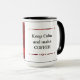A coffee mug with a design that says: “Keep Calm and Make Coffee”. This design was created by Debbie Quick from Debs Creative Designs. www.debscreativedesigns.com