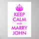 A parody on a vintage British WWII poster to remind the freaked out bride to keep her head. Besides your choice in wording on this poster, the background colour can also be changed.
