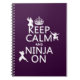 This design reads 'Keep Calm and Ninja On'. There are silhouettes of three ninjas beside the words. It's a design which is popular with everyone who loves ninjas and ninja-ing and action movies from the east.