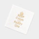 Keep calm and party on exclusive custom gold Foil Napkins. Fancy napkins for New Year event, Birthday party celebration, aniversary, wedding reception etc. Silver and bronze foil available too. Modern typography with princess crown.