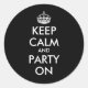 Keep calm and party on funny black wedding favour stickers and envelope seals. Customizable Keepcalm template with custom background colour. Vintage Keepcalmandcarryon theme. Create your own humourous keep calm and carry on parody.