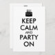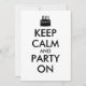 Make customized keep calm invitations with this template. It has an image of a cake with candles instead of the keep calm crown logo. It says Keep Calm and Party On.
