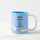 Keep Calm and Pet Cats with outline drawing of two cats, is printed on the mug style of your choice. The background colour can be customized.