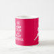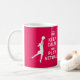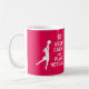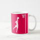 Fun keep calm and play netball quote, with goal shooter player silhouette image on coffee mug. Also on t-shirt and gifts. Would make a great gift idea for a netball player or fan.