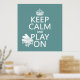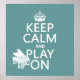 This reads Keep Calm and Play On, in the style of the classic keep calm poster. The silhouette of a grand piano stands beside the words. It's a beautiful design, great for everyone who loves piano. Makes great gifts for piano teachers.