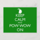 "KEEP CALM AND POW WOW ON" with the profile of a Native American. Design based on the 1939 British morale poster "Keep Calm and Carry On".