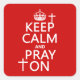This reads Keep Calm and Pray On, in the style of the classic keep calm poster.  There are christian crosses standing on and beside the words.  It's a simple respectful design, which makes wonderful gifts and thank yous to any member of the church.  It's truly wonderful advice in times of emergency.