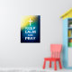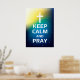 Motivational poster. Keep calm and pray. Open space, starry sky style. Print design. Dark background