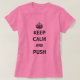Adorable "keep calm and push" t-shirt in maternity for the mom to be with black lettering on light background. Get ready for labour and delivery with this funny baby shower apparel for the new mother. From the classic "keep calm and carry" on theme of british paraphernalia.