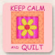 Show off your love of quilting with this fun and colourful quilt block proclaiming "Keep Calm and Quilt". This design is original quilt art with a colourful appliqué flower patchwork block. The word "quilt" is easy to change to another word of your choice. The quilt design is in vibrant and dynamic colours of orange, yellow and pink for a beautiful colour palette. Fully customizable to personalize. Quilt art is original art from fabric and quilt designer Phyllis Dobbs. This art is available on other products and in several colour backgrounds and is also available on more Keep Calm products with different quilt art. More products are available in Phyllis' BusinessWithFlair store.
