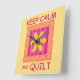 Show off your love of quilting with this fun and colourful quilt block proclaiming "Keep Calm and Quilt". This design is original quilt art with a colourful appliqué flower patchwork block. The word "quilt" is easy to change to another word of your choice. The quilt design is in vibrant and dynamic colours of orange, yellow and pink for a beautiful colour palette. Fully customizable to personalize. Quilt art is original art from fabric and quilt designer Phyllis Dobbs. This art is available on other products and in several colour backgrounds and is also available on more Keep Calm products with different quilt art. More products are available in Phyllis' BusinessWithFlair store.