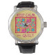 Show off your love of quilting with this fun and colourful quilt block wrist watch proclaiming "Keep Calm and Quilt". This design is original quilt art and favourite patchwork quilt blocks plus unique blocks including log cabin, pinwheel, star, and square in a square blocks. The word "quilt" is easy to change to another word of your choice. The quilt design is in vibrant and dynamic colours of orange, yellow, pink, turquoise, and lime green for a beautiful colour palette. Fully customizable to personalize. Quilt art is original art from fabric and quilt designer Phyllis Dobbs. This art is available on other products and in several colour backgrounds and is also available on more Keep Calm products with different quilt art. More products are available in Phyllis' BusinessWithFlair store.