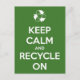 An eco-friendly twist on a vintage WW2 British motivational poster in green with white text and recycle symbol. Help raise awareness by sending this postcard.