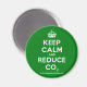 Based on the original Keep Calm and ... poster this green and white Calm and Reduce CO2 magnet features a custom designed font that matches the original closely.
