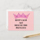A soft pink background with a pink princess crown, says 'keep calm and rescue the princess'