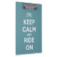 Inspired by a vintage WW2 British motivational poster and recreated on a medium blue background with white text, bicycle silhouette, and fun new message of encouragement for cyclists everywhere.