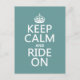This is the classic Keep Calm poster rewritten to 'Keep Calm and Ride On'. It still has the classic crown at the top. It makes a great and thoughtful gift for anyone who loves to ride, and perfect products for riding schools and riding coaches.