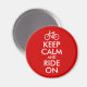 Red and white customizable "Keep Calm and Ride On" design for cycling. You can change the background colour. If you need smaller text size, select all so that you change the bicycle outline at the same time.