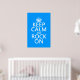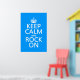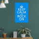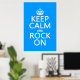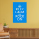 This reads Keep Calm and Rock On, in the style of the classic keep calm poster. It's a simple beautiful design, perfect for anyone who loves to rock.