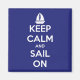 Inspired by a vintage WW2 British motivational poster and recreated on a nautical blue background with white text, a sailboat silhouette, and a relaxing new message of encouragement.